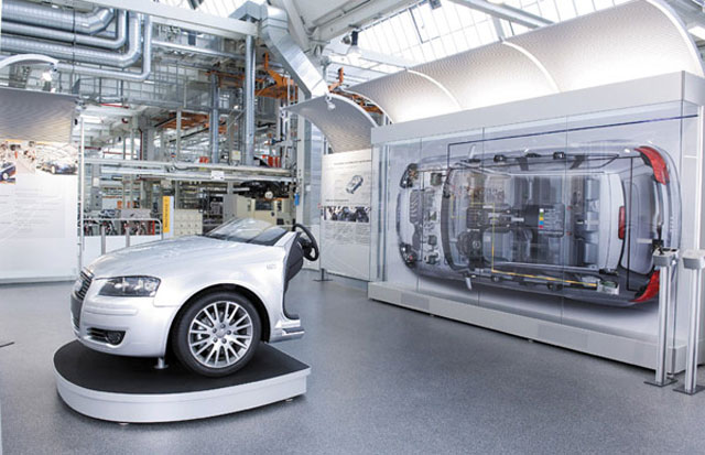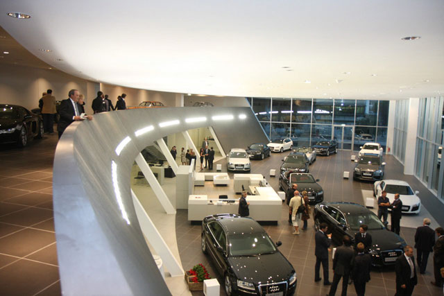 4. Audi Curve - รูปแบบชั้นลอยภายในโชว์รูมเป็นทรงโค้ง สามารถมองเห็นรถที่จัดแสดงได้ชัดเจน