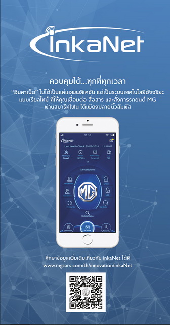 - ฟังก์ชั่นติดตามรถยนต์แบบเรียลไทม์สามารถบอกตำแหน่งรถ พร้อมแนะนำเส้นทางที่มีการจราจรสะดวกที่สุด พิเศษสำหรับลูกค้า NEW MG6 จะได้รับสิทธิพิเศษสามารถเชื่อมต่อระบบ inkaNet ผ่านเครือข่ายโทรศัพท์มือถือฟรีนาน 5 ปี