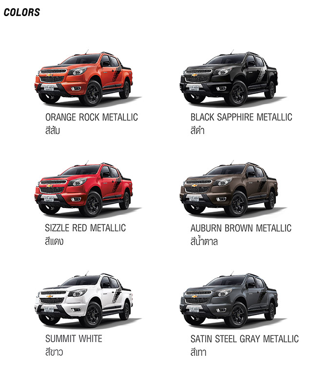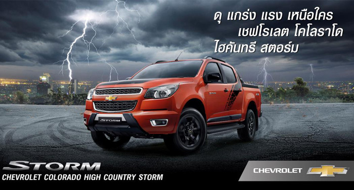 เชฟโรเลต โคโลราโด High Country "STORM" ใหม่ เปิดตัวพร้อม 2 รุ่นย่อย ทั้งแบบขับเคลื่อน 2 ล้อ และ 4 ล้อ ได้แก่ High Country STORM 2.8 AT 4x4 และ High Country STORM 2.8 AT 4x2 โดยเพิ่มความหล่อเข้มตั้งแต่หัวจรดท้าย อัดแน่นด้วยประโยชน์ในการใช้สอยซึ่งตอบโจทย์ของชีวิต ดูแกร่งมากขึ้นด้วยชุดแต่งรอบคัน