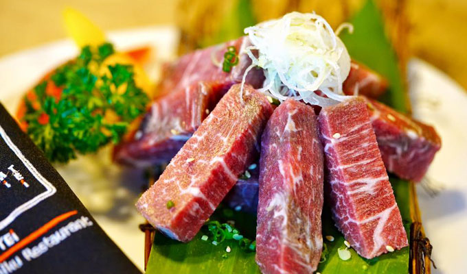 - จิ้มเนื้อวากิวกับน้ำจิ้มสูตรพิเศษที่พัฒนาโดยเชฟของ Sumi Tei