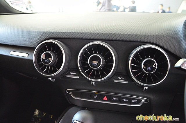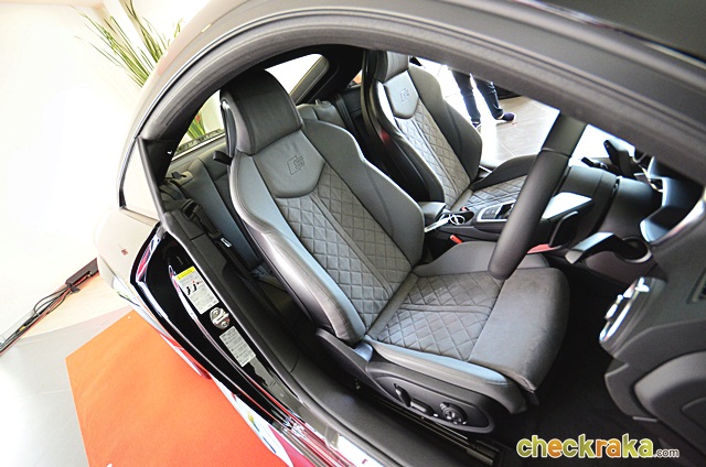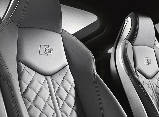 เบาะคู่หน้าทรงสปอร์ต "บักเก็ตซีต" หุ้มด้วยหนังอัลคันทารา (Alcatara) พร้อมปักโลโก้ "S" บ่งบอกความรุ่น TTS ปรับระดับด้วยไฟฟ้า พร้อม Lumbar support เพื่อดุนหลัง 4 ตำแหน่ง ระบบปรับอากาศอัตโนมัติ แบบ deluxe ช่องแอร์ทรงกลมดีไซน์สไตล์เครื่องบินรบพร้อมปุ่มควบคุมภายในวงกลมช่องแอร์