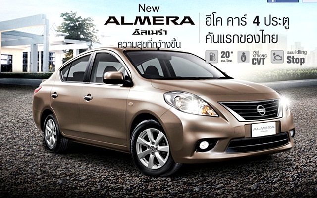 ถัดจากความสำเร็จของนิสสันมาร์ชมาเพียงปีเดียว นิสสันก็สร้างความฮือฮาอีกครั้งในปี 2554 ด้วยการเปิดตัวรถยนต์รุ่นใหม่ เอาใจคนเมืองที่ชอบอีโคคาร์สไตล์ซีดานกับ นิสสัน อัลเมร่าที่ชูคอนเซปต์ว่า "ความสุขที่กว้าง.....ขึ้น" นิสสัน อัลเมร่า ใหม่ กลายเป็นอีโคคาร์ 4 ประตูรุ่นแรกของประเทศไทย พัฒนาต่อยอดจากรุ่นพี่ "มาร์ช" บนโครงสร้าง V-Platform เดียวกัน ด้วยจุดเด่นการผสมผสานความหรูหราและความประหยัด ด้วยรูปลักษณ์ตัวถังขนาดใหญ่ พื้นที่ภายในกว้างขวาง นิสสัน อัลเมร่า มาพร้อมเครื่องยนต์เบนซิน 3 สูบ 1.2 ลิตร ให้กำลังสูงสุด 79 แรงม้า มีให้เลือกทั้งระบบเกียร์ธรรมดา 5 สปีดและระบบกียร์อัจฉริยะ XTRONIC-CVT เติมเต็มทุกความต้องการได้ไม่รู้จบในห้องโดยสารที่ใหญ่ขึ้นเพิ่มพื้นที่ส่วนตัวของคุณให้มากกว่า สบายกว่า บนดีไซน์ปราดเปรียวโฉบเฉี่ยวทุกการขับเคลื่อน