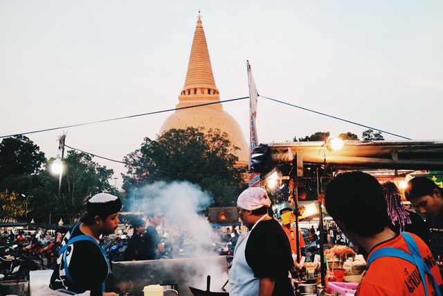 ไปมาหลายที่ใกล้จะหมดวันละ ขอปิดท้ายอีกที่ที่ห้ามพลาดก่อนกลับกรุงเทพละกันนะคะ ปิดท้ายทริปด้วยมื้อเย็นที่ “ตลาดโต้รุ่งองค์พระปฐมเจดีย์” ที่นี่มีให้เลือกทั้งอาหารคาวและอาหารหวานเพียบบบบบบบบ ร้านส่วนใหญ่เป็นร้านเก่าแก่ที่ตั้งขายกันมาตั้งแต่ยุคเริ่มเปิดตลาด และสืบทอดกันมาจนปัจจุบัน ที่สำคัญราคาไม่แพง ทำให้เราสามารถชิมให้ครบทุกร้านถ้ายังทานไหว เวลาเปิดร้าน ทุกวัน ตั้งแต่เวลา 17.00 - 24.00 น.