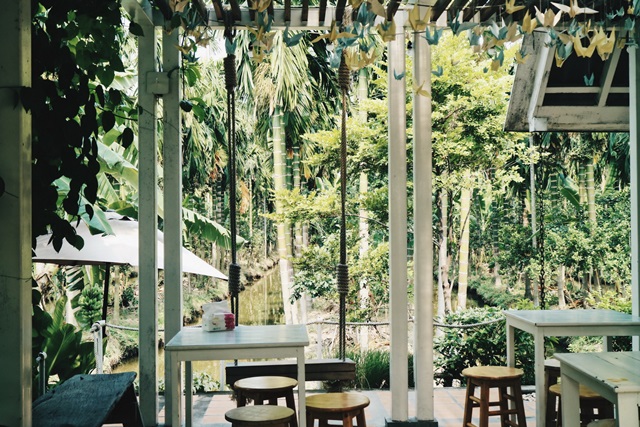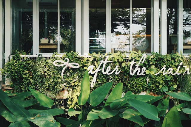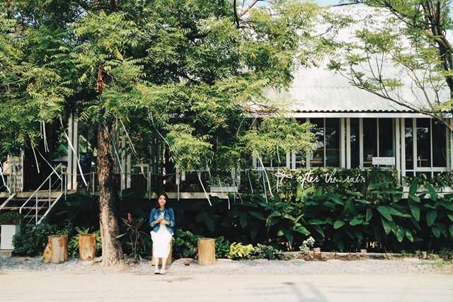 ขึ้นรถกันต่อ อย่าให้ช้าค่ะ ยังต้องไปอีกหลายที่ ขับรถจากตลาดน้ำดอนหวายออกมานิดเดียวมาต่อกันที่ร้าน “After the rain” ร้านน่ารักๆ ที่ไม่ควรพลาด ภายในร้านแต่งร้านโทนสีขาวและเหลือง มีที่นั่งทั้ง indoor และ outdoor แต่ด้านนอกช่วงกลางวัน ช่วงนี้อากาศอาจจะค่อนข้างร้อนสักหน่อย ที่เราชอบมากๆ คือร้านติดกับท้องร่องสวน บรรยากาศดีมาก เหมือนมานั่งทานกาแฟในบ้านสวน ร้านนี้ไม่มีเมนูอาหารคาว มีแต่เครื่องดื่มกับเบเกอรี่ ถ้าเพื่อนๆ ไปเดินเที่ยวตลาดน้ำดอนหวายเสร็จแล้วอยากมาแวะทานขนม เราขอแนะนำร้านนี้เลยค่ะ