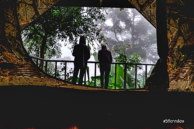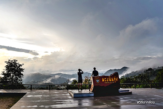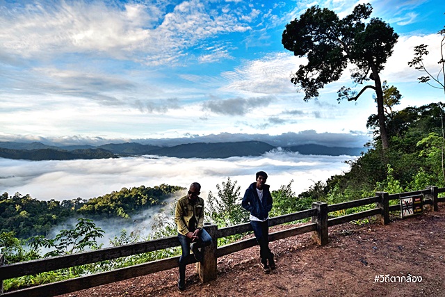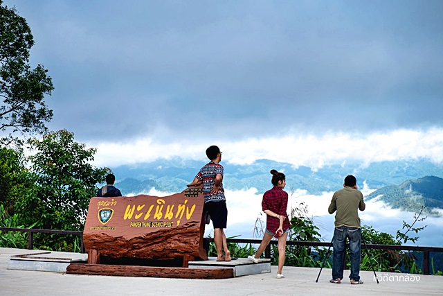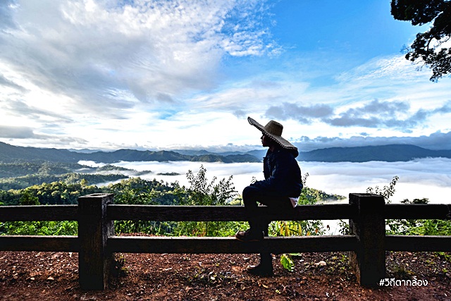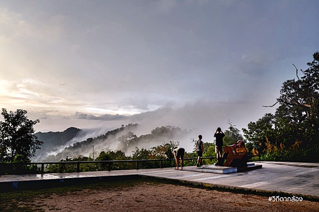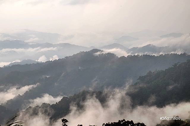 มองออกไปจากจุดชมวิว จะเห็นเทือกเขาสลับซับซ้อน ถูกโอบอุ้มไปด้วยปุยหมอกขาวๆ แลดูสบายตา