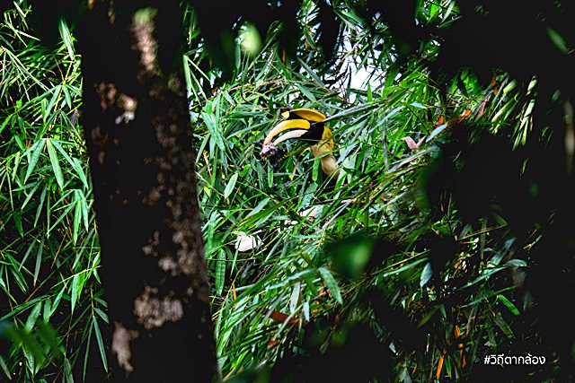 ระหว่างเดินไปเก็บเต็นท์ เหลือบไปเห็นเจ้านกเงือกตัวนี้ ซึ่งอยู่ใกล้และตัวของมันใหญ่มาก