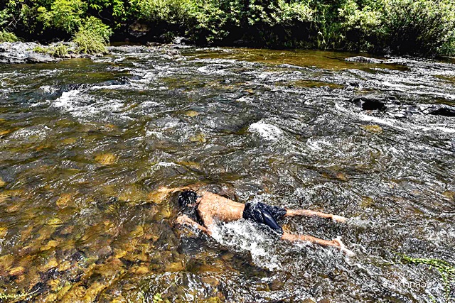 แช่น้ำกันเพลินมาก น้ำใส เย็นสบาย รู้ตัวอีกทีฟ้าก็เริ่มมืดลง แถมเย็นนี้ยังไม่มีอะไรกินด้วย 555
