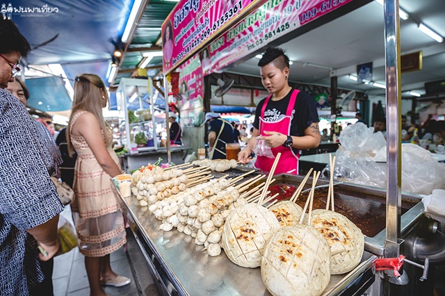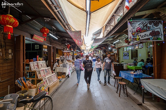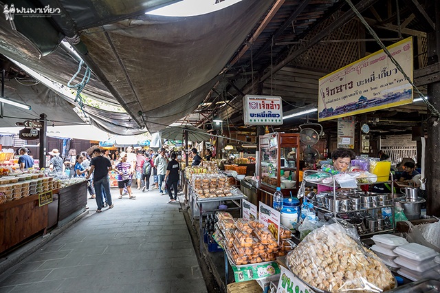คนอื่นมาที่นี่ทำอะไรกันไม่รู้ แต่นุ้ยมาเพื่อกิน เป็นตลาดที่คึกคักมาก คึกทั้งนักท่องเที่ยว แม่ค้า และของกิน ตลาดแห่งนี้เป็นห้องแถวไม้อยู่ริมแม่น้ำ ท่าจีน ตลาดจะเปิดทุกวัน ไม่เว้นวันหยุด เริ่มตั้งแต่ 7.00 - 18.00 น.