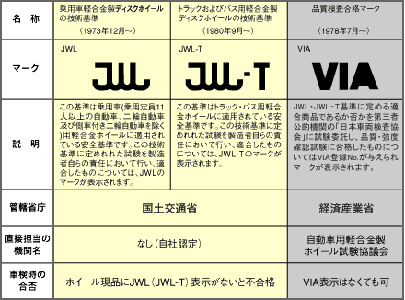- VIA (The Vehicle Inspection Association of Japan) เป็นสถาบันตรวจสอบตามมาตรฐานของ JWL