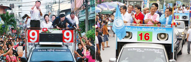 สิ่งที่จำเป็นสำหรับผู้สมัครผู้ว่ากทม.เกือบทุกคนเลยก็ว่าได้ นั่นคือ "รถหาเสียง" ที่ต้องติดป้ายพร้อมตัวเลขใหญ่ๆ วิ่งกระจายไปในที่ต่างๆ ของกรุงเทพฯ พร้อมทั้งเปิดเพลงหาเสียง เปิดสปอตโฆษณา ประกาศนโยบายไปด้วย ถือเป็นการสร้างรายได้อย่างหนึ่ง ให้ชาวบ้านที่รับจ้างขับรถกระบะไปในตัว ข้อดีของรถกระบะก็คือสะดวกต่อการหาเสียงในตรอกซอยหรือแหล่งชุมชนได้เป็นอย่างดี