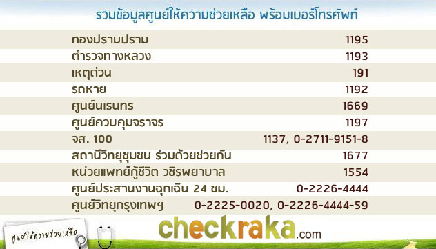 นอกจากนี้เราก็มีเบอร์แจ้งเหตุด่วนเหตุร้ายเอามาฝากทุกคนด้วยครับ
