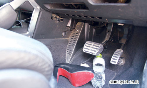 การถอดรองเท้าขณะขับรถ แล้ววางรองเท้าไว้ใกล้ๆ ตัว ย่อมอันตรายกว่าใส่รองเท้าขับ เพราะรองเท้าที่เราถอดไว้อาจไหลเข้าไปติดใต้แป้นเบรก และเมื่อต้องการเหยียบเบรก จะติดรองเท้า ทำให้เบรกได้ไม่ลึก และไม่สามารถหยุดรถได้ ดังนั้นควรใส่ และเลือกรองเท้าที่เหมาะสมกับการขับรถเพื่อความปลอดภัยนะครับ