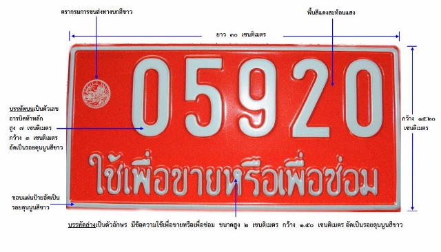 - เครื่องหมายสําหรับรถที่ได้รับอนุญาตให้นํารถมาใช้เพื่อขายหรือเพื่อซ่อม(ป้ายแดง) ประกอบด้วย