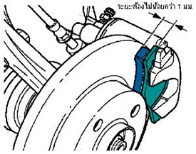 วัดความหนารวมทั้งชุดเหล็กประกบและเนื้อผ้าเบรกไม่ต่ำกว่า 7 มม.