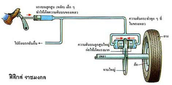 นึกถึงพ่อครัวกำลังควงแป้งพิซซ่า ขอบแป้งจะหมุนไม่เรียบสม่ำเสมอ ระบบไหลเวียนน้ำมันเบรกเป็นระบบปิด มีลักษณะถ่ายเทกำลังไป-กลับ เมื่อจานเบรกคด จะผลักดันผ้าและลูกสูบเบรกให้ถอยกลับ น้ำมันเบรกจึงถูกดันไหลกลับไปสู่กระบอกแม่ปั๊มเบรกตัวบน และดันชุดลูกสูบเบรกตัวบนส่งกลับมายังแป้นเบรกจึงเกิดอาการเบรกสู้เท้านั่นเองครับ
