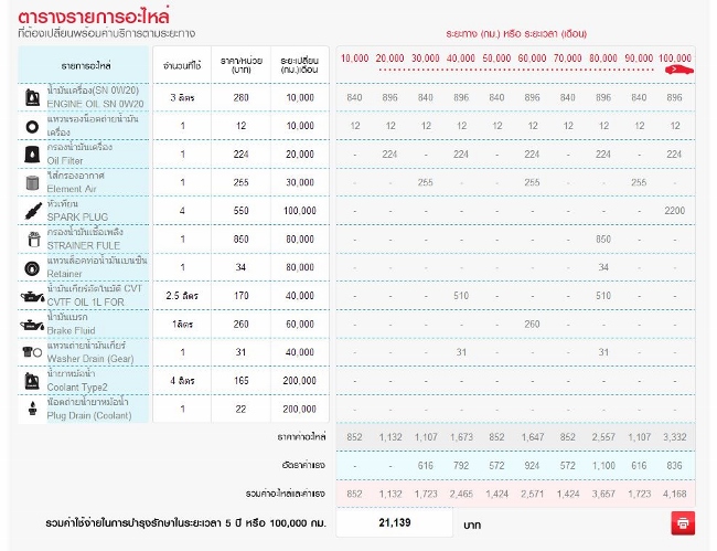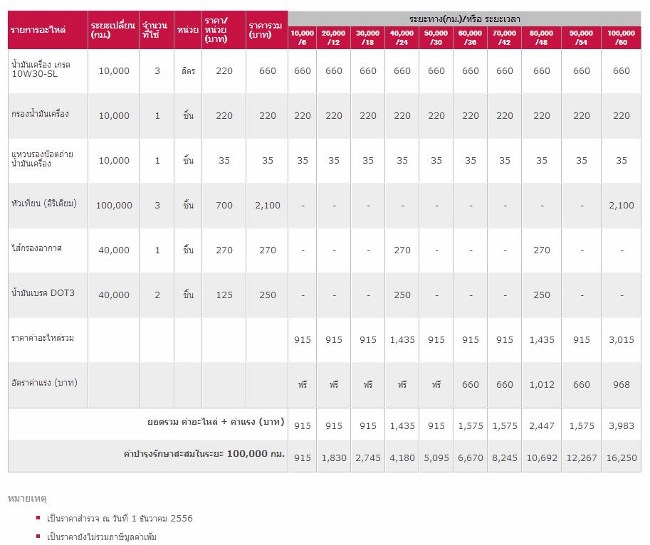 ตารางค่าใช้จ่ายบำรุงรักษาฮอนด้า บรีโอ