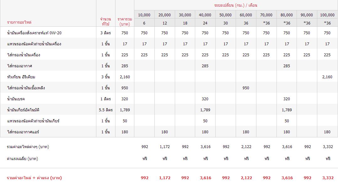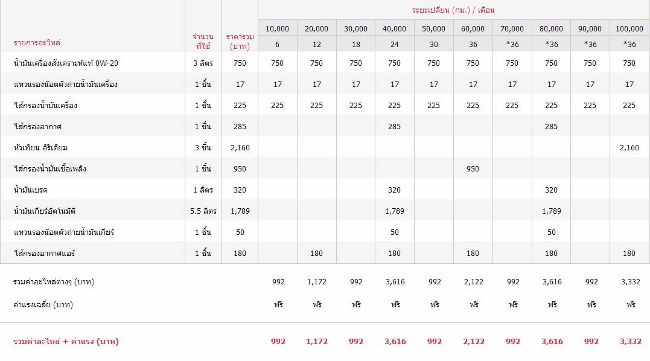 รายละเอียดการบำรุงรักษาตามระยะทาง (ข้อมูลโตโยต้ายารีสใหม่ยังไม่อัพเดท)