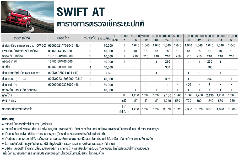 ตารางค่าใช้จ่ายบำรุงรักษาซูซูกิ สวิฟต์