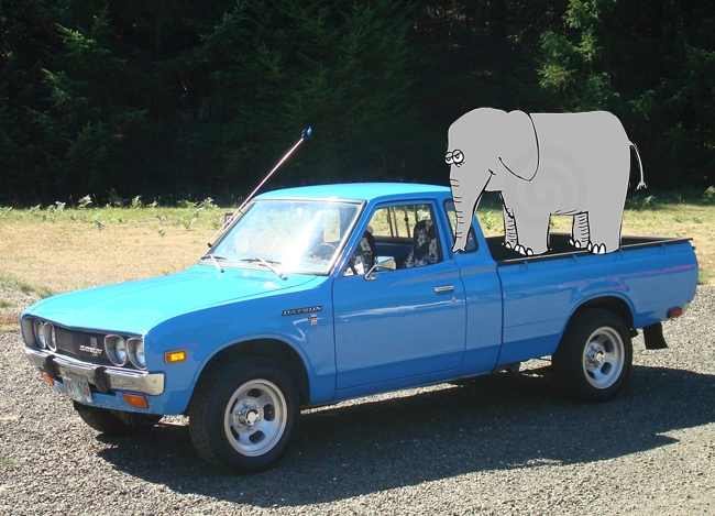 Datsun - ช้างเหยียบ ดัทสันหรือนิสสันในปัจุบันที่จริงคือรถปิคอัพรุ่น L620 มีทั้งเครื่องยนต์เบนซิน 1.3 และ 1.5 ลิตร เกียร์แบบกระปุกและแบบเกียร์มือ (อยู่ที่คอพวงมาลัย) ซึ่งในยุคที่จำหน่ายนั้นได้มีการถ่ายทำโฆษณาโดยใช้ช้างจริงๆ ขึ้นไปเหยียบบนกระบะหลังเพื่อสื่อถึงความแข็งแกร่งทนทานของรถรุ่นนี้ แต่น่าเสียดายที่ไม่สามารถหาข้อมูลหรือภาพประกอบได้ แต่จากโฆษณานี้ทำให้เจ้าดัทสัน L620 โด่งดังในชั่วข้ามคืน