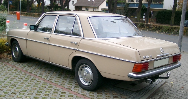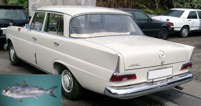 W 110 - เบนซ์หางปลา เมอร์เซเดส เบนซ์ ยุคแรกๆ ที่มีการออกแบบช่วงท้ายให้มีเอกลักษณ์เฉพาะตัว โดยช่วงท้ายเป็นสันเหลี่ยมยาวและปลายแหลมดูคล้ายหางของปลา จึงถูกเรียกว่าง่ายๆ ว่า "เบนซ์หางปลา"
