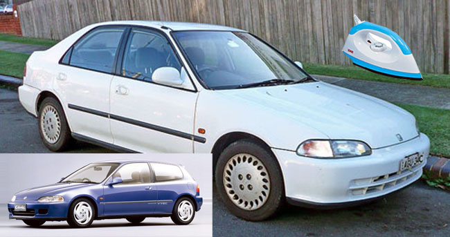 Civic EF Honda Civic - เตารีด/EG/3Door ฮอนด้า ซีวิคโฉมนี้เป็นรุ่นยอดฮิตติดชาร์จอันที่หนึ่งของกลุ่มวัยรุ่นในยุคนั้นที่นำมาจับแต่งมากที่สุด และจากรหัสตัวถังที่ใช้คือ EG ทำให้คนในวงการจึงใช้เรียกรุ่นนี้ไม่ว่าจะเป็นแบบ 3 หรือ 4 ประตู แต่หากรุ่น 3 ประตูมักถูกเรียกอีกแบบว่า 3 Door มากกว่าเพราะเป็นรถแบบ 3 ประตูชัดเจนกันไปเลย แต่ที่น่าฉงนคือ มีการเรียกว่ารถรุ่นนี้ว่า "เตารีด" ซึ่งบางมุมก็ดูคล้ายอยู่บ้าง และก็กลายเป็นลัญลักษณ์ของรถรุ่นนี้ไปโดยปริยาย แต่จริงๆ แล้วดูเหมือนว่า รุ่นตัวถัง EF น่าจะเหมือนเตารีดมากกว่านะครับ