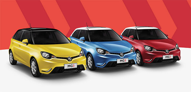 รายละเอียด MG3 และ MG6 MG3 แบ่งเป็นรุ่นแฮตช์แบ็ก (Hatchback) 5 ประตู และรุ่นครอส (Xross) มาพร้อม 6 สีสดใส คือ ขาว - Arctic White, เงิน - Platinum Silver, ดำ - Pitch Black, แดง - Regal Red / White Top, เหลือง - Tudor Yellow / Black Top และฟ้า - Thames Blue / White Top