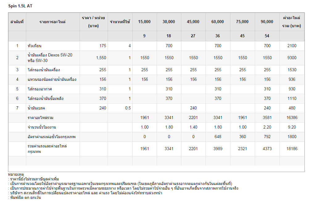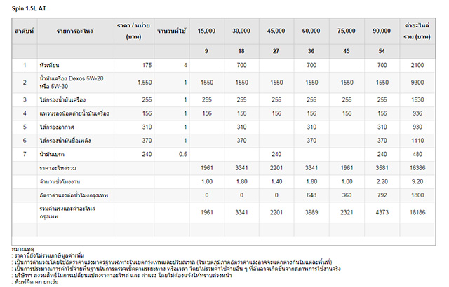 ค่าบำรุงรักษา/ภาษีประจำปี เชฟโรเลต สปิน ใช้เครื่องยนต์ขนาด 1,485 ซีซี ดังนั้นจึงชำระค่าภาษีประจำปีเพียง 1,627.5 บาท ใน 5 ปีแรก หลังจากนั้นภาษีจะลดลงปีละ 10% ไปเรื่อยๆ