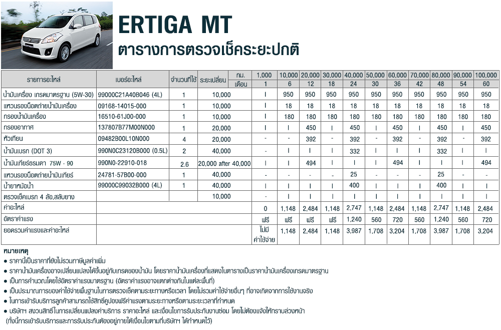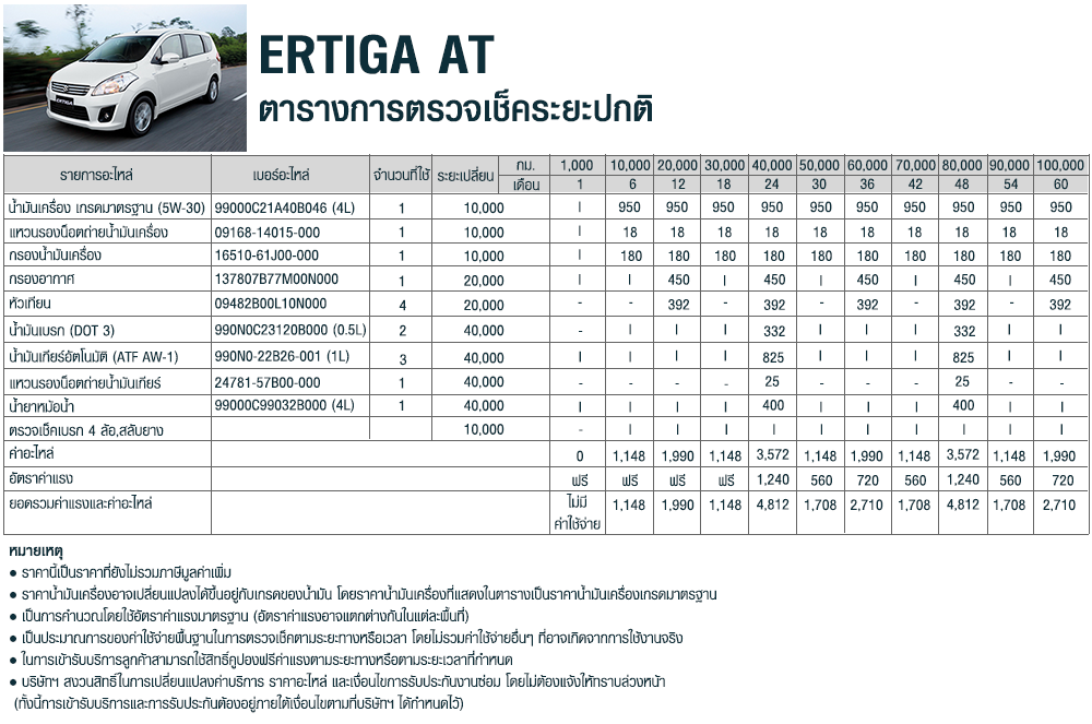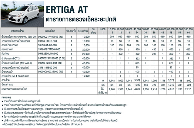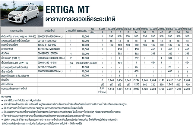 ค่าบำรุงรักษา/ภาษีประจำปี ซูซูกิ เออติกา ใช้เครื่องยนต์ขนาด 1,373 ซีซี ดังนั้นจึงชำระค่าภาษีประจำปีเพียง 1,459.5 บาท ใน 5 ปีแรก หลังจากนั้นภาษีจะลดลงปีละ 10% ไปเรื่อยๆ