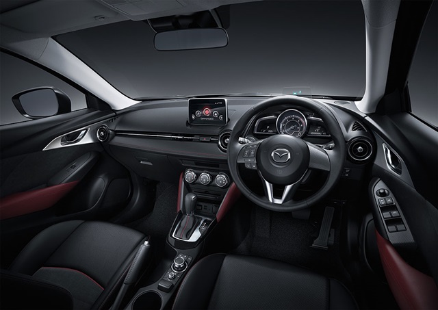 ภายในโชว์เทคโนโลยี MZD Connect ควบคุมด้วยปุ่มตรงคอนโซลกลาง พร้อมจอแสดงผลกลางคอนโซลหน้า มาตรวัดล้ำอนาคตด้วยจอใส่เหนือหน้าปัดบอกความเร็วและแจ้งเตือนโดยไม่ต้องละสายตาออกจากถนน เบาะและชุดคอนโซลรวมทั้งแผงประตูถอดแบบมาจากมาสด้า2 แต่ใช้วัสดุและมีความประณีตมากยิ่งขึ้น จนกลายเป็น มินิครอสโอเวอร์พรีเมียมก็ว่าได้