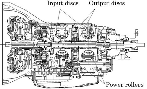 ยังมีระบบ CVT อีกแบบที่อาจไม่ค่อยถูกใช้งานในรถยนต์ขับเคลื่อนล้อหน้าสักเท่าไหร่นักก็คือ Half-Toroidal Continuously Variable Transmission แบบเอียงมุมของสายพาน แทนการขยับของพูเล่ย์ ซึ่งจะใช้การเอียงของสายพานให้ขยับไปตามความชันของตัวพูเล่ย์ทั้ง 2 ชุด ส่วนมากจะอยู่ในเกียร์ของรถขับเคลื่อนล้อหลัง