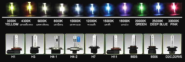 ภาพจาก pitinauto.com สำหรับหลอดที่มีสีเคลือบตามท้องตลาดที่มีราคาต่ำๆ โดยเฉพาะสีน้ำเงินเข้ม มักจะแก้ไขด้วยการใช้วัตต์สูงๆ ประมาณ 80 - 100 วัตต์ขึ้นไป เพื่อให้มีความสว่างเทียบเท่าหลอดแบบใส แต่ลำแสงจะมีสีตามที่ต้องการ เพื่อลดจุดด้อยนั่นเอง แต่อาจทำให้ขั่วหลอดสายระบบไฟละลายได้