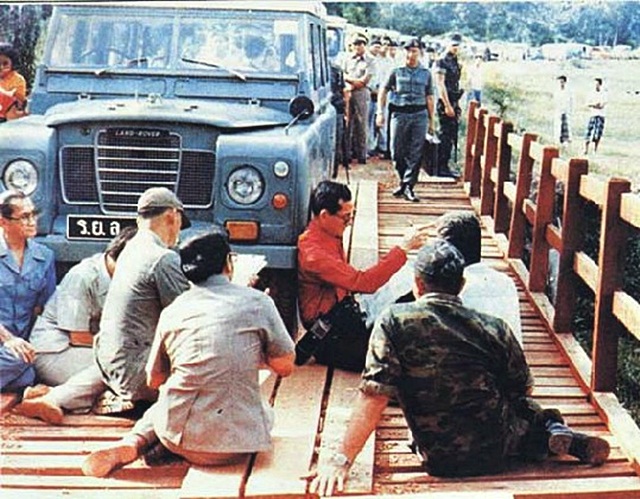 เหตุการณ์ในภาพนี้เกิดขึ้นเมื่อวันที่ 7 กันยายน 2524 พระบาทสมเด็จพระเจ้าอยู่หัวฯ ได้เสด็จพระราชดำเนินมาทรงงาน ณ บ้านเจาะบากง หมู่3 ตำบลปูโยะ อำเภอสุไหงโก-ลก จังหวัดนราธิวาส โดยมิได้นัดหมายให้ราษฎรในพื้นที่ทราบล่วงหน้า ในขณะนั้นชาวบ้านที่มีชาวไทยพุทธ และไทยมุสลิม กำลังทำนาอยู่ในพื้นที่ เมื่อได้ยินเสียงรถยนต์ของตำรวจทางหลวงนำขบวนเสด็จฯ ชาวบ้านในละแวกนั้นจึงวิ่งออกมารับเสด็จฯ ริมถนนเส้นทางเสด็จฯ รวมทั้งนายพร้อม จินนาบุตร ขณะนั้นมีอายุ 47 ปี (เสียชีวิตเมื่อปี 2555 ขณะอายุ78 ปี) ได้นั่งและยกมือกราบบังคมทูลพระบาทสมเด็จพระเจ้าอยู่หัวฯ พระองค์ทอดพระเนตรลุงพร้อม และทรงรับสั่งให้รถยนต์พระที่นั่งฯ หยุด แล้วทรงตรัสถามลุงพร้อมว่า "ที่นี่ที่ไหน" ลุงพร้อมตอบว่า "หมู่บ้านเจาะบากง" และพระองค์ทรงตรัสว่า "หมู่บ้านดังกล่าวไม่มีในแผนที่ มีแต่บ้านโคกกูโน และบ้านโคกกูยิ" ซึ่งหมู่บ้านทั้ง 2 แห่ง มีเขตติดต่อกับบ้านเจาะบากง ในระหว่างนั้นลุงพร้อม จึงได้เสนอขอพระราชทานให้มีการขุดคลองเชื่อมต่อคลองโต๊ะแดง หลังจากนั้นพระบาทสมเด็จพระเจ้าอยู่หัวฯ ได้เสด็จฯ ลงจากรถยนต์พระที่นั่งฯ แล้วเสด็จพระราชดำเนินไปที่สะพานไม้พร้อมกับลุงพร้อม เพื่อทอดพระเนตรสภาพพื้นที่เพื่อรับสั่งดำเนินการต่อไป นับเป็นภาพที่ประทับใจมากที่สุดอีกหนึ่งภาพ ในพระราชกรณียกิจของพระบาทสมเด็จพระเจ้าอยู่หัวฯ