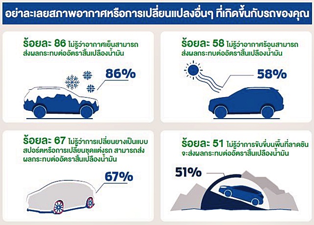ร้อยละ 37 ของผู้ขับขี่ไม่รู้ว่า การเร่งเครื่องและเบรกกะทันหันสามารถส่งผลกระทบกับอัตราสิ้นเปลืองน้ำมัน
