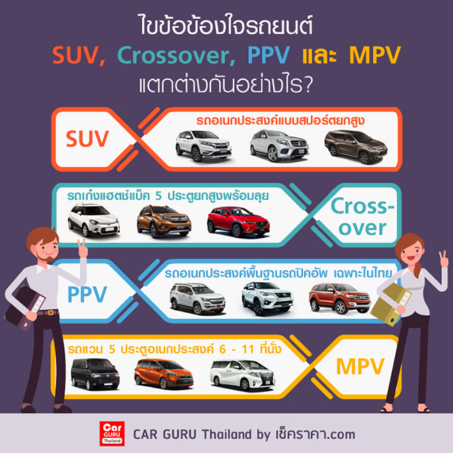 ไขข้อข้องใจรถยนต์ SUV, Crossover, PPV และ MPV แตกต่างกันอย่างไร?