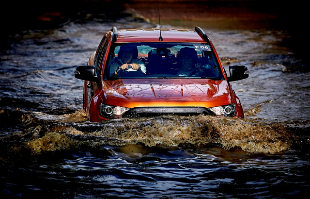 ก่อนที่จะขับรถข้ามแอ่งน้ำใหญ่ ผู้ขับขี่ควรตระหนักถึงประสิทธิภาพในการลุยน้ำของรถยนต์ เช่น ฟอร์ดเรนเจอร์ ที่สามารถลุยน้ำที่มีความลึกสูงสุดถึง 800 มิลลิเมตร โดยช่วงล่างและด้านหน้ารถได้รับการออกแบบให้สามารถกระจายแรงดันจากน้ำได้อย่างดี