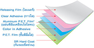 2.3 ฟิล์มนิรภัย มีความหนาตั้งแต่ 4 MIL ขึ้นไป (1 MIL = 1/1,000 นิ้ว) มีทั้งชนิดลดความร้อน และไม่ลดความร้อน คุณสมบัติคือ จะช่วยยึดเกาะแผ่นกระจกให้คงรูปเดิมมากที่สุดเมื่อกระจกถูกแรงกระแทก และแตกเป็นเม็ดละเอียด และเนื้อฟิล์มก็ยังช่วยซับแรงได้อีกชั้นหนึ่ง ส่วนมากจะใช้ในงานอาคารสูงเพื่อยึดกระจกไว้เวลากระจกแตก แต่ปัจจุบันก็เริ่มนำมาใช้ในรถยนต์มากขึ้น