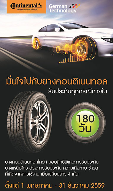 ยาง Continental ใจป้ำ ส่งโปรโมชั่นรับประกันยางทุกกรณี 180 วัน