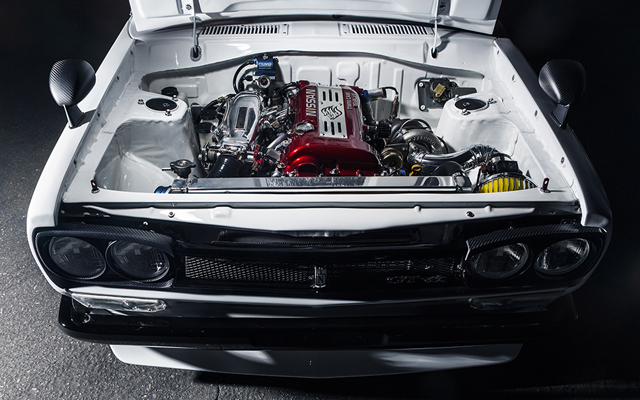 ภายนอกถูกดัดแปลงด้วยคาร์บอนไฟเบอร์เพื่อให้น้ำหนักเบาขึ้น ที่เห็นชัดที่สุดคือ ใช้ชุดดัดแปลง C10 Skyline หรือที่รู้จักกันในชื่อ Hakosuka