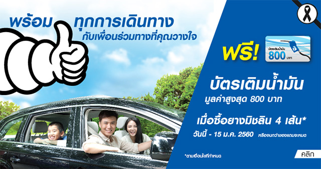 มิชลินจัดหนักใจดีมอบบัตรเติมน้ำมันฟรี 800 บาท เมื่อซื้อยางมิชลิน 4 เส้น*