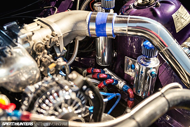 ระบบระบายความร้อนทั้งหม้อน้ำและอินเตอร์คูลเลอร์ทำขึ้นพิเศษ คอยล์จ่ายไฟจุดระเบิดจาก Bosch 6 ตัว กล่องควบคุมจาก Microtech’s LTX12 ส่งกำลังด้วย Twin-plate ผ่านเกียร์จาก RX-7 5 จังหวะ ผลคือ พลัง 730 แรงม้าลงพื้นแบบเต็มๆ