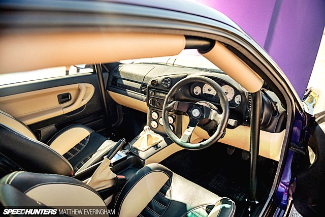 ภายในคงสภาพเดิมๆ เอาไว้ด้วยเบาะหนังแท้ คอนโซลและอุปกรณ์อื่นๆ ยังคงเป็นแบบที่ติดมากับตัวรถตั้งแต่ปี 1995 แต่มีการเพิ่มเติมความแข็งแรงตัวถังด้วยชุดโรลบาร์ เพิ่มมาตรวัดรอบเครื่องยนต์ Autogage ขนาด 5 นิ้ว วัดบูสต์เทอร์โบ, วัดแรงดันน้ำมันเชื้อเพลิง และเกจวัดค่าต่างๆ ที่จำเป็นเพิ่มเข้าไป