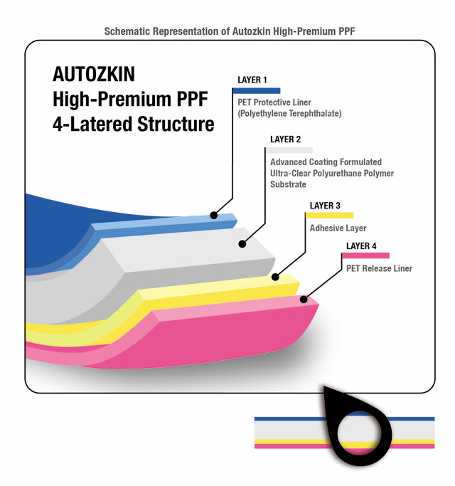 AutozkinHigh Premium PPF (TPU film granted with antifouling property ) คือ นวัตกรรมฟิล์มกันรอยปกป้องสีรถระดับพรีเมี่ยม ที่นำคุณสมบัติซึ่งเป็นคุณลักษณะพิเศษเฉพาะฟิล์มกันรอยที่พัฒนาโดยออโต้ซคิน นำมาผสานเข้าไว้ด้วยกัน เพื่อให้เนื้อฟิล์มมีประสิทธิภาพสูงสุดในการปกป้องสีรถ
