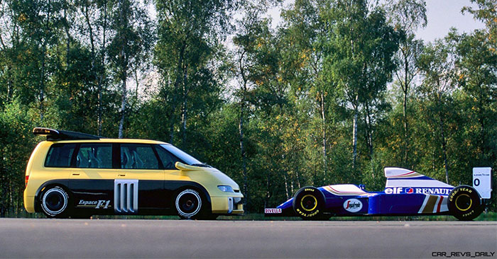 Renault Espace F1 คื่อ ผลผลิตจากทีม Matra and Renault Sport สร้างรถคันนี้ขึ้นมาเพื่อฉลองของ Williams Formula 1 team ด้วยการจับเอาแชชซีสของรถแข่ง F1 ในทีมมาใส่ตัวถังรถที่ออกแบบจากรุ่น Espace ที่ทำจากคาร์บอนไฟเบอร์น้ำหนักเบา หรือเรียกง่ายๆ ว่าเอาตัวถังมาครอบลงในรถ F1 นั่นเอง