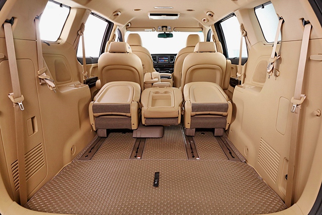 ระบบเชื่อมต่อโทรศัพท์แบบไร้สาย, USB แผงควบคุมระบบปรับอากาศด้านหลังแบบแยกอิสระ พร้อมช่องแอร์สำหรับผู้โดยสารตอนหลัง เบาะนั่งขนาดใหญ่ เบาะแถวที่สอง แยกพับแบบ 40:60 ปรับเลื่อน หน้า-หลัง พร้อมที่พักแขน เบาะแถวที่สาม แยกพับ 50:50 พร้อมช่องวางของและแก้วน้ำอีกเพียบ
