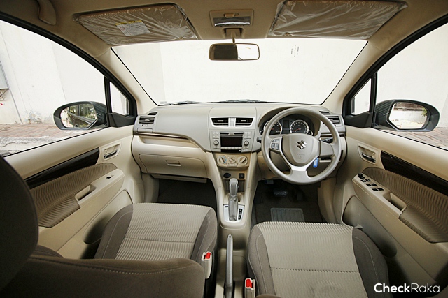 ภายในอาจดูไม่ล้ำอนาคตมากนักเพราะยังใช้แนวทางการดีไซน์เดียวกับในรุ่นสวิฟต์เป็นหลัก แต่มีข้อดีคือ ช่วงตำแหน่งคนขับมีความโปร่งโดยเฉพาะบริเวณที่วางขาที่ไม่ทำให้อึดอัด และตำแหน่งที่นั่งคนขับได้ระดับกำลังดี มองเห็นได้รอบคันชัดเจนยิ่งช่วยให้ขับง่ายขึ้น แม้จะมีรูปทรงคล้ายๆ รถตู้ในบางมุมก็ตาม และอาจต้องทำใจรับกับความโบราณในบางจุด เช่น มาตรวัดแบบทรงกลมพร้อมตัวเลขบางตัวที่ตีลังกา และจอแสดงผลเล็กๆ ตรงกลาง