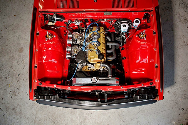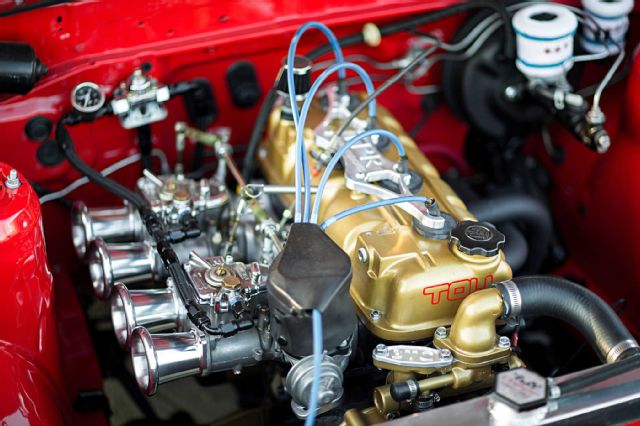 เครื่องยนต์รหัส 18T ถอดคาร์บูเรเตอร์เดิมๆ ทิ้งเปลี่ยนมาใช้ Weber ดูดอากาศสดๆ 2 ชุด จากสำนัก Toy Tuning stacks พร้อมทำสีฝาครอบวาล์วและเก็บรายละเอียดได้อย่างสวยงาม พร้อมด้วยเกียร์แบบธรรมดาดั้งเดิม