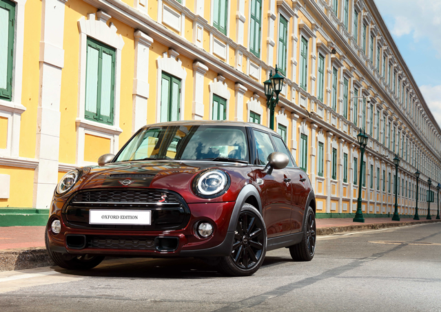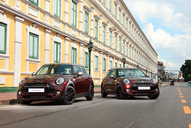 แฮทช์ 5 ประตู รุ่นพิเศษ >Oxford Editionที่นำเข้ามาจำหน่ายในประเทศไทยเพียง 60 คัน แตกต่างจากรุ่นปกติหลายรายการ ตั้งแต่ตัวถังสีแดง Pure Burgundy ตัดด้วยหลังคาสีดำและกระจกมองข้างสี Melting Silver มีลูกเล่นรอบคันด้วยอุปกรณ์ตกแต่งพิเศษ ไม่ว่าจะเป็นล้ออัลลอยลายขนาด 17 นิ้ว สีดำลาย Cosmos Spoke สะดุดตาด้วยสติ๊กเกอร์ลายทางคู่อันเป็นเอกลักษณ์ที่บริเวณด้านหน้ารถ ด้านหลังรถ และมือจับประตู ส่วนฝาปิดถังน้ำมัน กรอบไฟหน้าหลัง ดุดันด้วยสี Piano Black ทำให้ตัวรถโดยรวมมีความสปอร์ตเร้าใจในสไตล์มินิ ขณะที่ไฟท้ายยังโดดเด่นด้วยรูปทรงและเส้นไฟ LED ลายธงยูเนียนแจ็ค สะท้อนความเป็นแบรนด์สัญชาติอังกฤษ