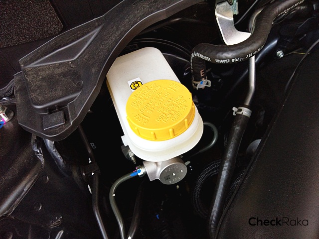 3. น้ำมันเบรกต้องเต็มในระดับ MAX หรือขีดที่กำหนดไว้ด้านบน (แล้วแต่รุ่นรถว่าจะใช้คำว่าอะไร) และสังเกตุ "ผ้าเบรก" เบื้องต้นจากการ "ส่อง" ดูที่ล้อว่ามีความหนาที่เนื้อผ้าเบรกเกินกว่า 5 มิลลิเมตรหรือไม่ สำหรับล้อหน้าที่เป็นดิสก์เบรกมักจะเห็นง่าย ส่วนถ้าล้อหลังเป็นดรัมเบรกอาจต้องเข้าศูนย์บริการให้ช่างช่วยเช็คอีกครั้งนึง