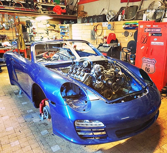 โดยปกติแล้วรถยนต์ Porsche จะใช้เครื่องยนต์วางหลังแบบนอนยัน แต่เมื่อ 997 คันนี้ถูกสำนักมือซน Danton Arts Kustoms จับถอดเครื่องยนต์เดิมออกทิ้งใส่เครื่องอเมริกันวี 8 สูบแทน แถมพ่วงซูเปอร์ชารจ์เข้าไปจนลืมปอร์เช่เดิมไปโดยสิ้นเชิง