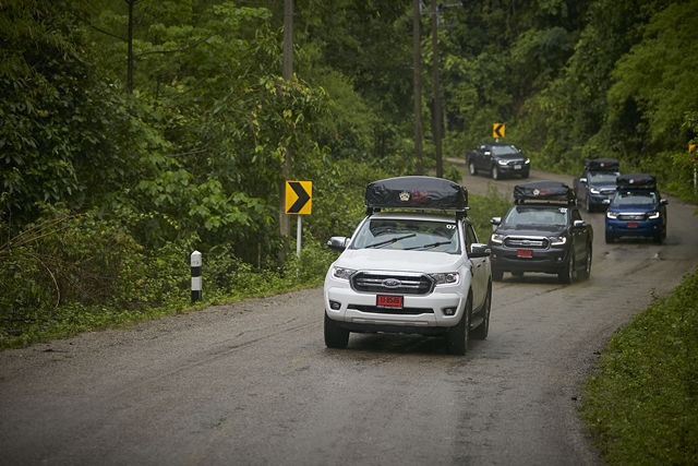 จากนั้นคณะจึงออกเดินทางพร้อมสัมภาระหนักต่างๆ เพื่อพิสูจน์สมรรถนะและความทนทานของ ฟอร์ด เรนเจอร์ กันต่อ ด้วยช่วงล่างที่แข็งแกร่งและโครงสร้างพิเศษที่เชื่อมต่อด้วย Ford Smart Mount ช่วยกระจายน้ำหนักไปทั่วท้ายกระบะ รวมทั้งระบบพวงมาลัยไฟฟ้าและระบบควบคุมเสถียรภาพการทรงตัว จึงช่วยให้การควบคุมรถและการทรงตัวผ่าน 1,219 โค้ง ตลอดเส้นทางกว่า 170 กิโลเมตร จากอำเภอแม่สอดไปยังอำเภออุ้มผาง ไปได้อย่างสบายๆ